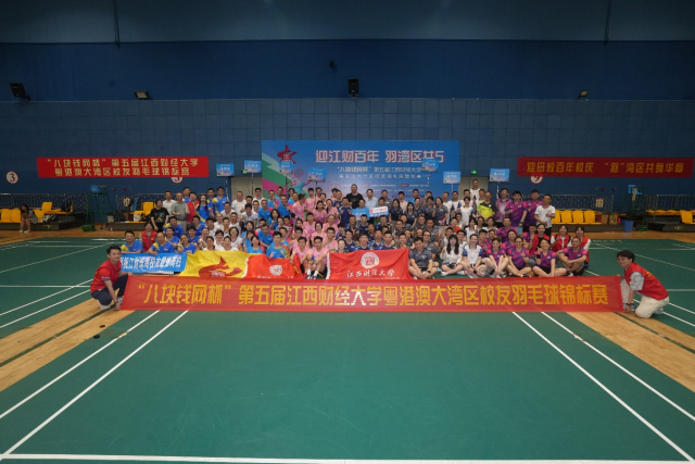 “百年情春风化雨滋养芬芳桃李,江财人众志成城书写灿烂篇章。”“迎江财百年,羽湾区共5”八块钱网杯第五届江西财经大学粤港澳大湾区校友羽毛球锦标赛于5月13至14日在东莞举办,锦标赛迎来了粤港澳大湾区的广州、惠州、深圳、香港、东莞、佛山、中山、珠海8个城市的校友羽毛球队参加。