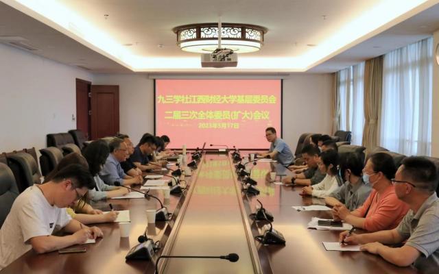 5月17日上午,九三学社江西财经大学基层委员会召开二届三次全委(扩大)会议暨届中调整会议。省政协副秘书长、九三学社江西省委会专职副主委肖礼庆,党委常委、副校长阙善栋出席。九三学社江西省委会组织部有关同志和校九三学社基层委员会20余名社员参加。会议由主委李庆主持。