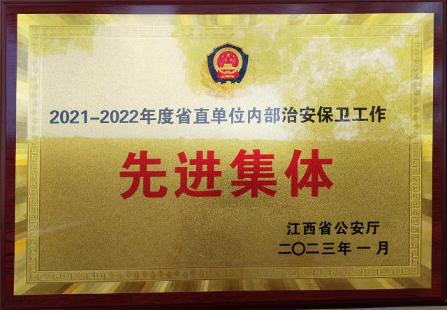 近日,江西省公安厅发布了2021-2022年度省直单位内部治安保卫工作先进集体表扬名单。保卫处喜获“省直单位内部治安保卫工作先进集体”荣誉称号。