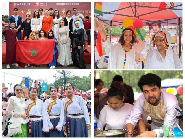 本届国际文化节以“百年江财风雨路,五洲同庆耀中华”为主题,活动安排了舞台歌舞表演及17个展棚文化展演,包括艺术表演、彩绘、特色游戏、照片展、风情美食、慈善义卖等。节目表演异彩纷呈,有东南亚国家特色风情舞蹈,摩洛哥传统服装走秀,几内亚、加蓬、莱索托的原始舞蹈,也有来自江财教师的旗袍舞韵、校民乐队的中国传统民乐、中国风的诗歌朗诵、汉服秀、少数民族舞蹈串烧,还有来自青山湖区胡家小学孩子们的武术表演等,现场不时响起雷鸣般的掌声和喝彩声。