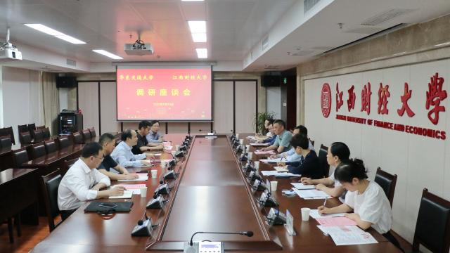 华东交通大学教务处、人文社会科学学院、外国语学院、经济管理学院和我校教务处、外国语学院、人文学院、工商管理学院、法学院等相关负责人参加了座谈会。(文/党办校办 赖悦绮 图/刘建芳 一审/姜莹 二审/赵旻 终审/李大晖)