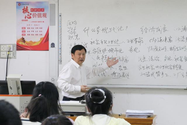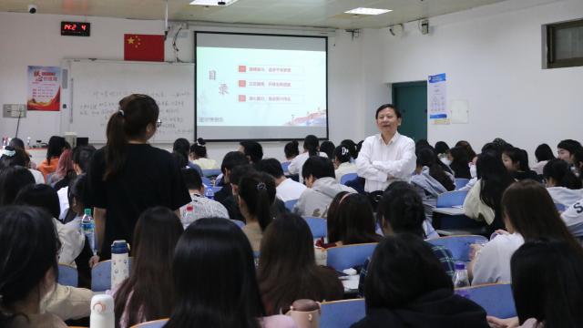 5月24日下午,校党委书记卢福财走进课堂,为本科生讲授《形势与政策》课。他讲授的主题是《走好中国式现代化之路》,主要从接续奋斗、追求千年梦想,立足国情、开辟全新道路,凝心聚力、推进复兴伟业等三个方面,为财务管理221班和会计学222班一百余名本科生进行讲授。