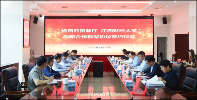 5月23日下午,我校与江西省自然资源厅签署战略合作框架协议。校长邓辉,党委常委、副校长袁雄,省自然资源厅党组书记、厅长宋斌,厅党组成员、副厅长涂迎九,省国土空间调查规划研究院院长周国员出席签约仪式。