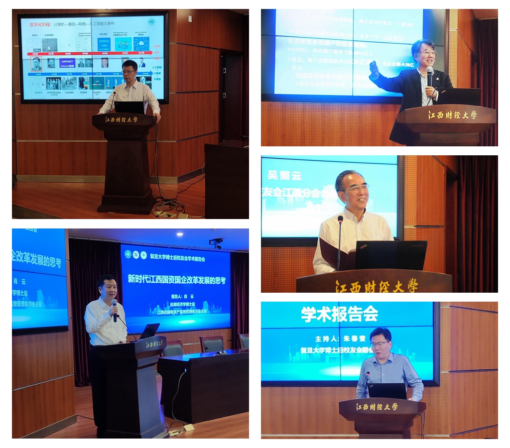 在随后的学术报告中,复旦大学计算机科学技术学院薛向阳教授,江西省国有资产监督管理委员会主任肖云博士后,复旦大学经济学院张陆洋教授,复旦大学应用经济学博士后、江西财经大学原副校长吴照云教授分别以关于建设数据与智能、新时代江西国资国企改革发展的思考,美国硅谷银行倒闭的风险因素分析、中国管理学派的几点思考为题作主题演讲。复旦大学博士后校友会副会长朱春奎教授主持学术报告会。