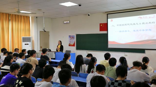 5月31日下午,副校长刘小丽以“走好中国式现代化之路”为题为软件2210班和中外软件221班同学讲述了一堂丰富多彩的《形势与政策》课。