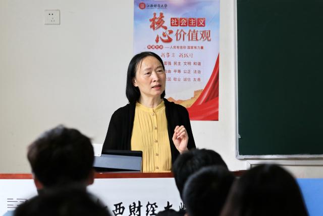 刘小丽在课堂教学中注重引用党和国家的政策动向,引用江西省内的政策、规划、数据材料等分析问题,课堂主题和内容非常新颖,在教学中注重与学生互动,启发学生思考。本课堂教学效果良好,讲课结束时学生报以热烈的掌声。(文/夏方胜 图/孙坚 编辑/丁璐璐 审核/一审 姜莹 二审 赵旻 终审 李大晖)