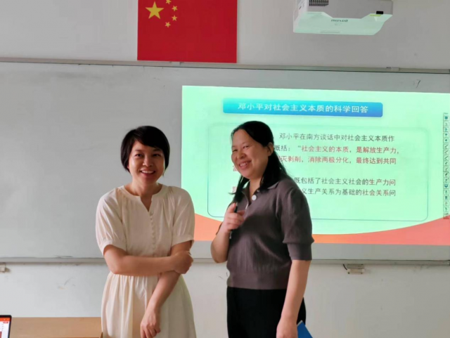 第四节课,李春根走进5313教室,听取了徐腊梅老师的《毛泽东思想和中国特色社会主义理论体系概论》课程。课后,邹艳芬就本堂课的教学内容与徐老师进行了交流。