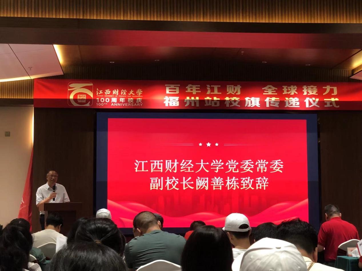 6月10日,“百年江财·全球接力”福州站校旗传递仪式举行,副校长阙善栋出席仪式,校友联络服务中心副主任周江军、部分省内外兄弟校友会代表、江西高校部分在闽校友会代表以及漳州、莆田、三明、南平等地区校友150余人参加仪式。