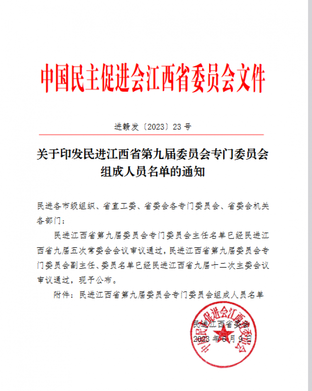 近日,民进江西省第九届委员会专门委员会主任名单已经民进江西省九届五次常委会会议审议通过,民进江西省第九届委员会专门委员会副主任、委员名单已经民进江西省九届十二次主委会议审议通过,我校民进9名会员入选新一届民进省委专门委员会。