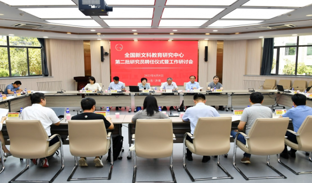 6月8日下午,全国新文科教育研究中心在山东大学中心校区举办第二批研究员聘任仪式暨工作研讨会。教育部新文科建设工作组组长、全国新文科教育研究中心主任、山东大学原校长樊丽明出席会议,会议由全国新文科教育研究中心执行主任仝兴华主持。会议线上线下同步进行,全国新文科教育研究中心成员、研究员等七十余人出席活动。财税与公共管理学院朱晓刚教授受邀参加线上会议,并受聘为全国新文科教育研究中心研究员。