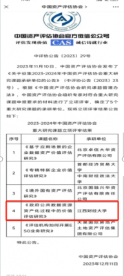 从2023年9月份开始,中国资产评估协会就发布了关于征集2023-2024年中国资产评估协会重大研究课题选题的公告(中评协公告〔2023〕17号),选题征集重点围绕党中央、国务院决策部署,聚焦把握新发展阶段、贯彻新发展理念、构建新发展格局等重大战略,推动资产评估行业更好地服务经济社会高质量发展,研究方向包括资产评估理论与方法研究、实务研究、行业管理与建设研究、行业新兴业务类型拓展研究等。选题要坚持正确政治导向,具有明确的研究目标、较高的学术价值和应用价值,具有创新性。