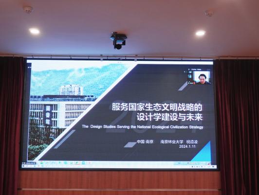 南京林业大学艺术设计学院院长、博士生导师祝遵凌教授远程分享了南京林业大学在服务国家生态文明战略下设计学的建设经验与展望。