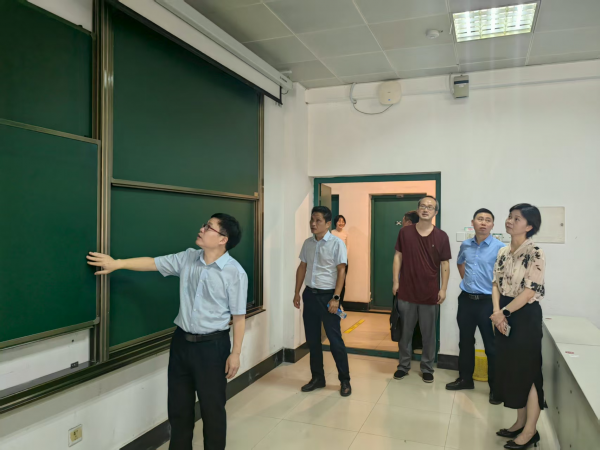 为切实做好2025年秋季学期开学准备工作,保障教学工作安全平稳有序进行,8月30日上午,副校长谢花林带队到各校区教学场馆开展巡查,指导相关部门做好开学前教学准备工作。党办校办、学生工作部(处)、教务处、后勤与资产管理处、校园建设处、保卫处、科技与信息化中心、体育学院等部门相关负责人陪同。