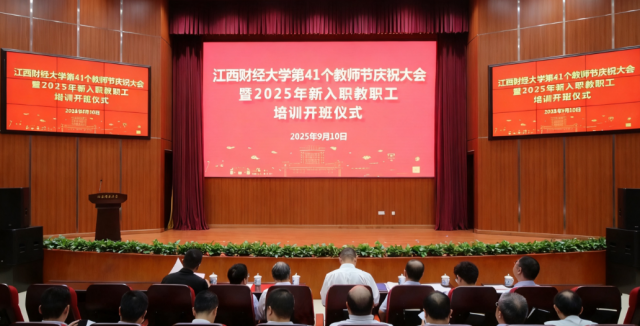 9月9日,学校举行第41个教师节庆祝大会。校领导刘耀彬、阙善栋、李春根、贺丹君、方玉明出席大会。中至数据集团行政总裁罗斯捷先生,江西财经大学MBA校友会副会长、秘书长刘志鹏校友,校属相关单位主要负责人、获奖教师代表、一线教师代表及全体新入职教职工参加大会。
