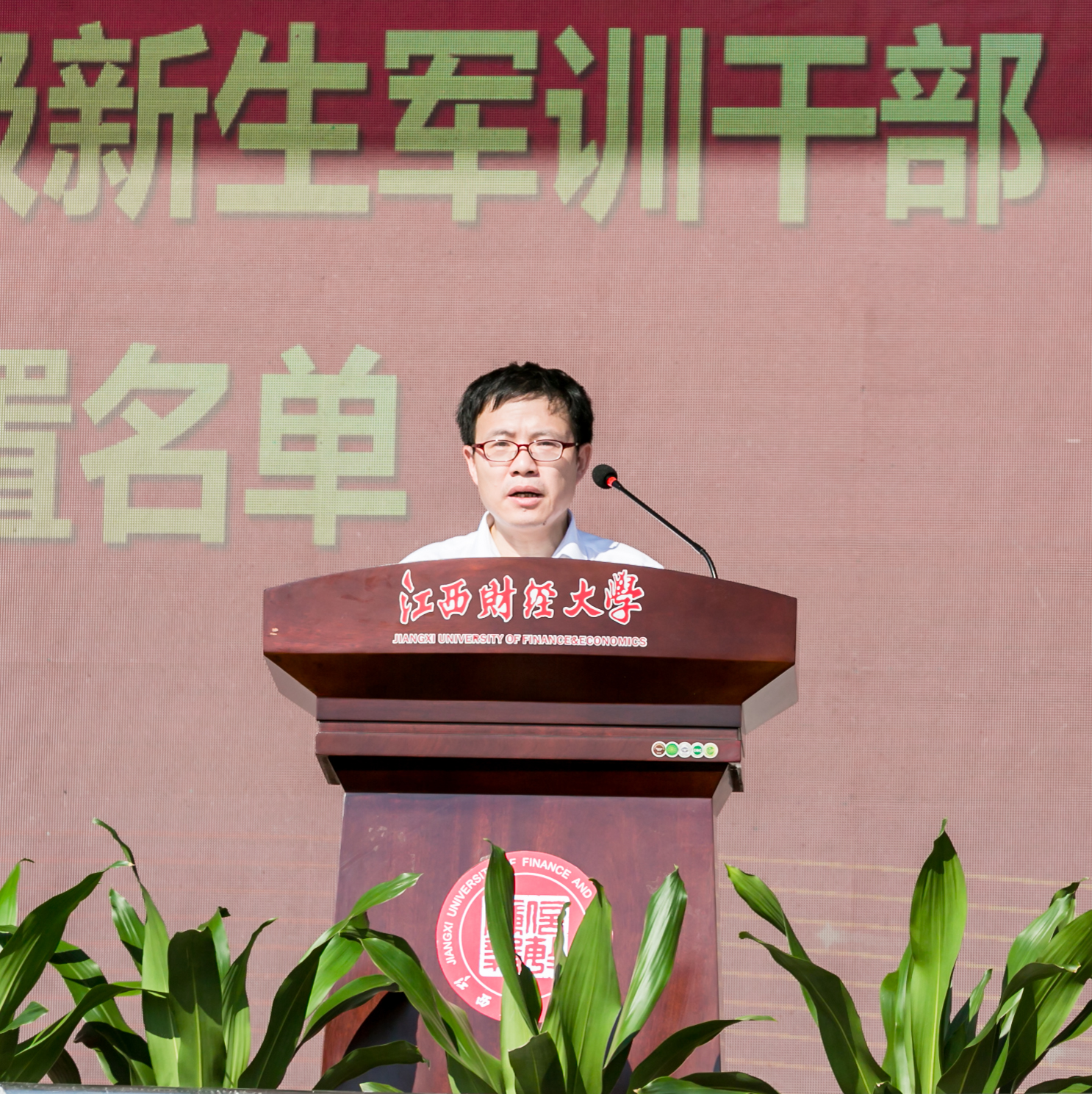 副校长谢花林宣读2025级新生军训干部配置名单。