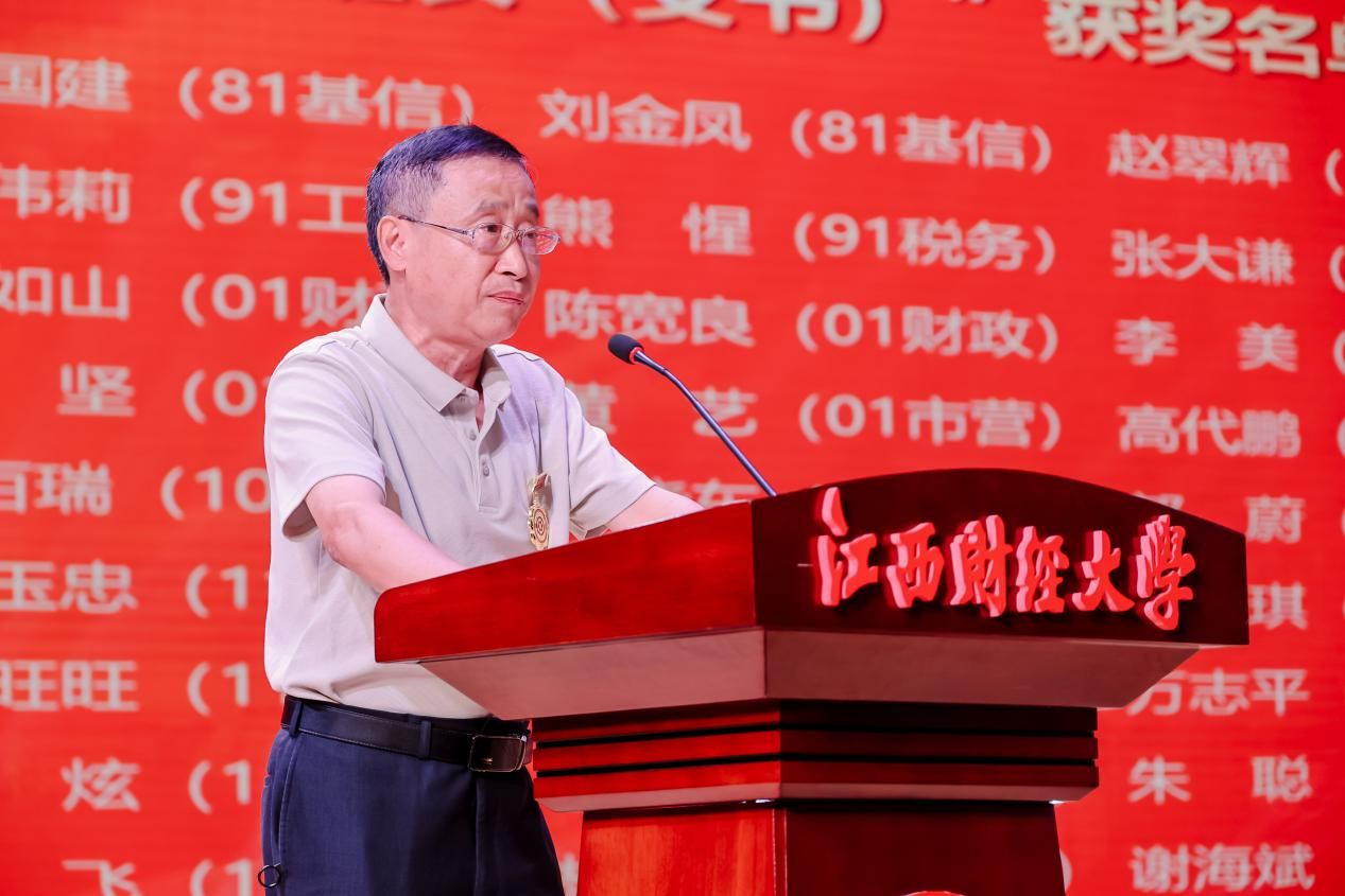 吴志军教授作为教师代表发言。他说校友们在江财不仅获取了专业知识,更培养了“信敏廉毅”的精神品格和面向未来、敢于担当的视野胸怀。他希望校友们心手相连,并肩前行,共同创造学校进步和校友发展的新辉煌。