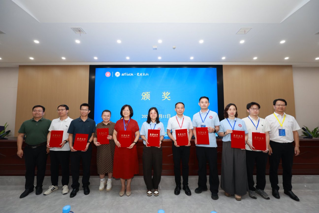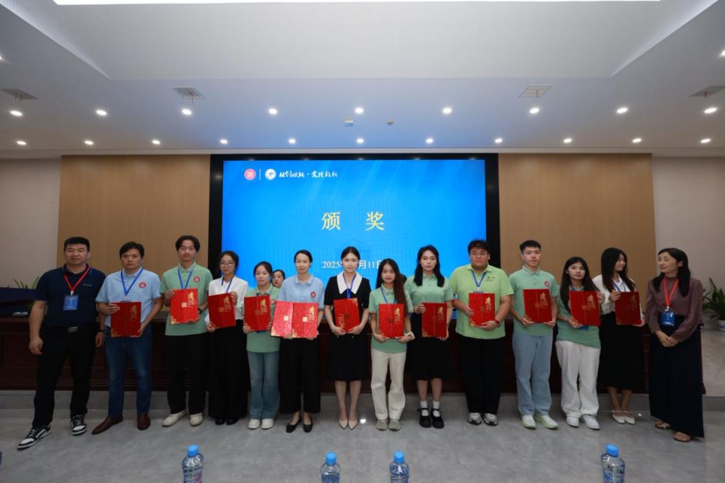 颁奖典礼上,江西省高等教育学会副会长肖德征、南昌大学教务处处长范杰平等领导和嘉宾分别为获奖团队和“优秀组织奖”颁奖。在欢快的乐曲声中,获奖学生依次上台领奖,现场掌声不断,气氛热烈。颁奖环节不仅是对获奖团队创新成果的肯定,更是对全体参赛学子勇于探索、敢于创新精神的极大鼓舞。