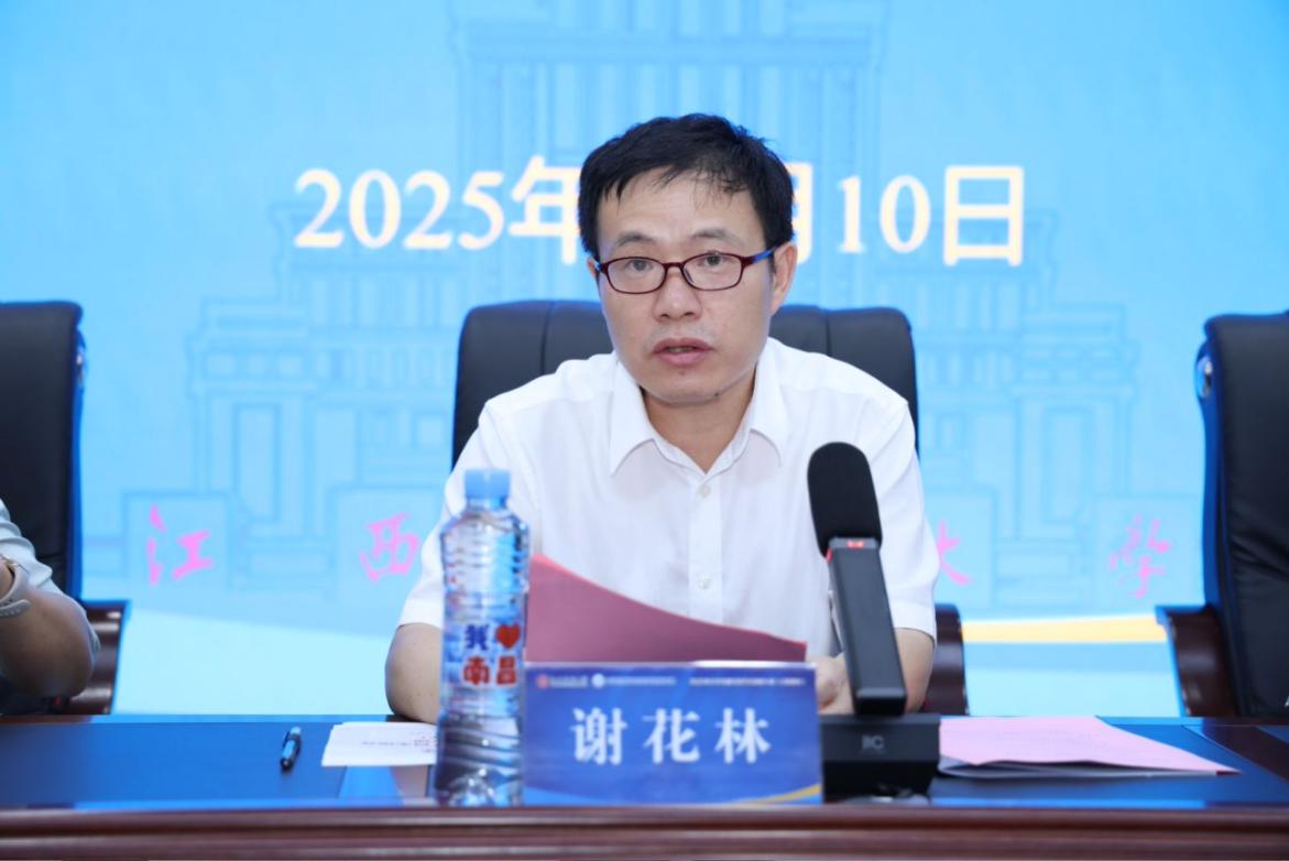 谢花林代表学校向各位领导及参赛师生致以诚挚欢迎。他重点介绍了我校在新文科建设方面的创新实践,指出学校通过搭建跨学科平台、开设“金融科技”“数字人文”等交叉课程,持续推进“文科+技术”的深度融合。谢花林特别指出,在近期召开的本科教育大会上,学校正式提出构建“3+4+X”人才培养体系,将新文科大赛作为落实“以赛促学、以赛促教”理念的重要平台。他表示,作为承办单位,学校高度重视此次赛事,专门成立工作团队,精心设计赛事各环节,全力做好服务保障,确保大赛圆满成功。
