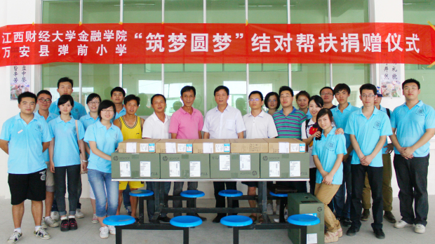在 此次帮扶工程中,江财与时俱进,顺应信息技术时代的发展,向万安县弹前小学捐赠了五台电脑,完善学校的网络室,使小学生们可以更好地学习使用计算机,同 时,江财捐赠团队还教授当地教师组网技术和计算机维修等基础知识,以方便日后的维修。其次,江财金融学院向弹前小学捐赠资金五千元。