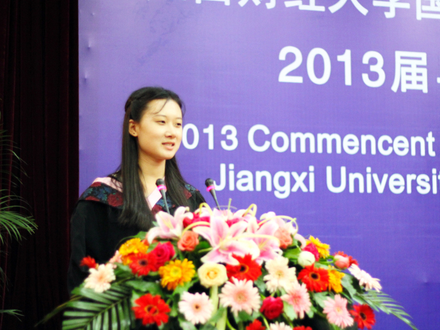 应届毕业生代表何卉子向悉心培养教导自己的母校和老师们表达了最诚挚的谢意,她表示将带着梦想与江财国际告别,带着国际人的信念与精神继续在人生的旅途中奋斗。