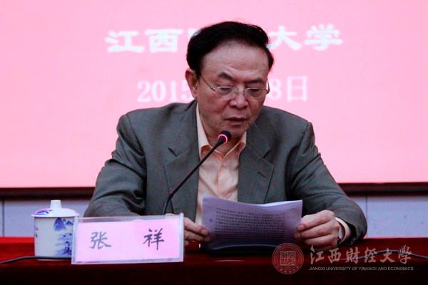 张详发表了热情洋溢的讲话,他指出“江西是中国革命、共和国、人们军队的摇篮,在江西举办‘讲坛’,对于推动人才建设具有特殊意义。江西财经大学作为财经方面的著名院校之一,理所应当走在改革开放的前沿。”他鼓励广大师生珍惜来之不易的学习机会,力求通过“蛟湖名家讲坛”促进省内外交流合作、相互学习,为江西的建设发展引入新的理念。