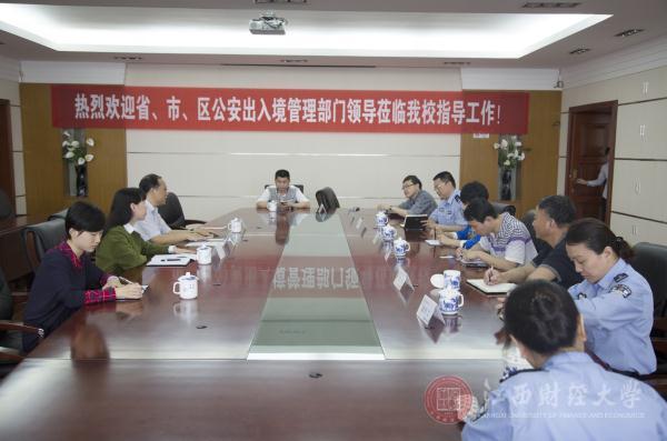 5月14日上午,江西省公安厅出入境管理局副局长郭薇等省、市、区公安出入境管理部门领导一行九人来校调研、指导出入境管理工作。郭薇一行听取了我校出入境管理工作的汇报,实地参观了我校外国人服务站,对做好来华境外人员管理与服务工作进行了调研。