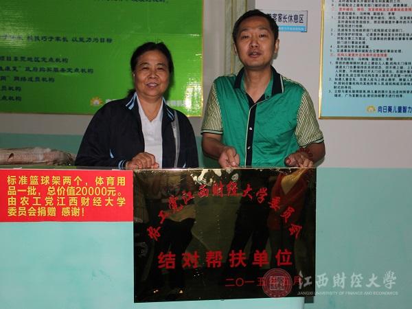 为传承“幼吾幼以及人之幼”的传统理念,以实际行动践行“社会主义核心价值观”,我校农工党委员会、体育学院来到九江市修水县向日葵儿童康复中心学校,开展“助残送温暖”活动。15日上午,在我校农工党主委崔开玲教授、体育学院党总支书记邹国辉的带领下,活动一行人带着一颗公益心,携着一批爱心物资来到了向日葵儿童康复中心学校。在康复中心学校负责人的陪同下,一行人参观了校舍,并来到智障儿童的上课教室,同他们一起开心游戏。纵然大雨滂沱,挡不住满室温情。随后,举行了简单的“结对帮扶揭牌仪式”,我校农工党向康复中心学校捐赠了室外标准篮球架和一批体育用品等物资,总价值两万余元。修水县的相关领导、康复中心分校的负责人向我校农工党及体育学院关心帮助残疾人、创造和谐友爱环境的善举表示了真挚感谢。