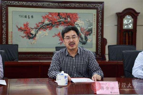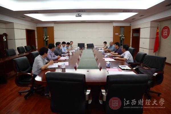 蒋金法向宁旭初一行来校调研表示热烈欢迎,并向来宾介绍了我校近年总体发展情况。与会人员分别就分管的工作进行了对接性交流,双方围绕人才队伍建设、内控制度建设、学科建设和财务管理等方面进行了深入交谈。