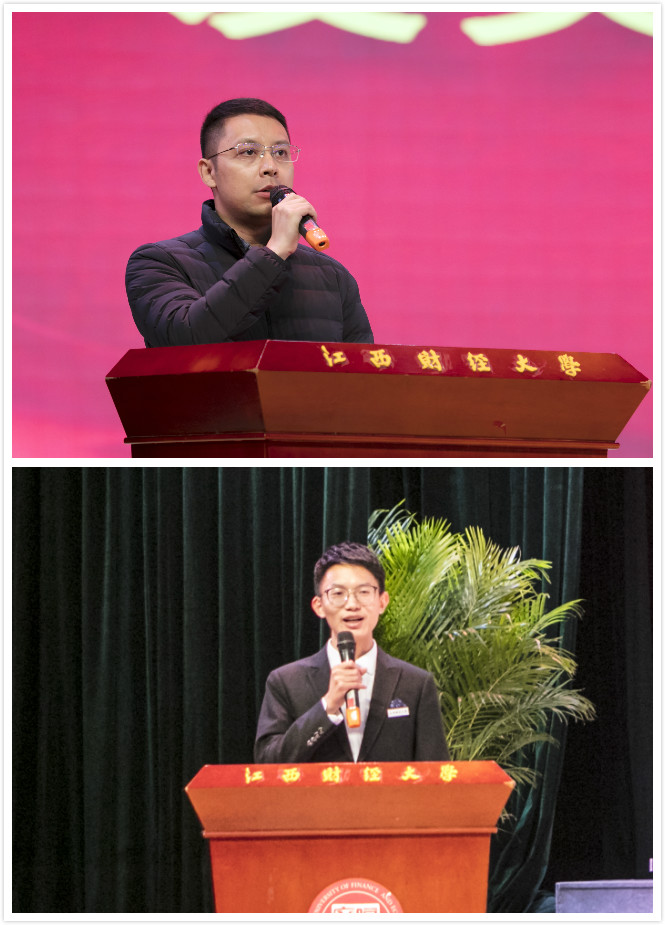 工商管理学院虞云峰同学代表获奖学生发言。他谈到,在大美江财绘就最美人生底色。我们用四年的青春、千日的成长、万里的拼搏绘就江财底色,怀着江财的青春韶华,点亮未来的风雨兼程。很荣幸用一个小我,代表无数优秀的江财学子分享我们的江财青春。大美江财的学生活动丰富多彩,江财学子用奋斗绘就青春江财。大美江财的无名英雄无处不在,江财学子用志愿服务绘就成长江财。大美江财的竞赛成果再创新高,江财学子用荣誉绘就拼搏江财。希望江财学子们以梦为马,携带着最美人生底色,绽放华彩,迈向远方。