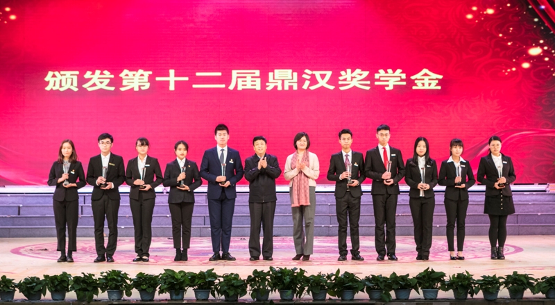 主持人宣读完毕,出席颁奖典礼的各位校领导与嘉宾(在我校设立奖助学金的校友与企业家代表)联袂为获奖学子和受表彰的先进集体颁奖。