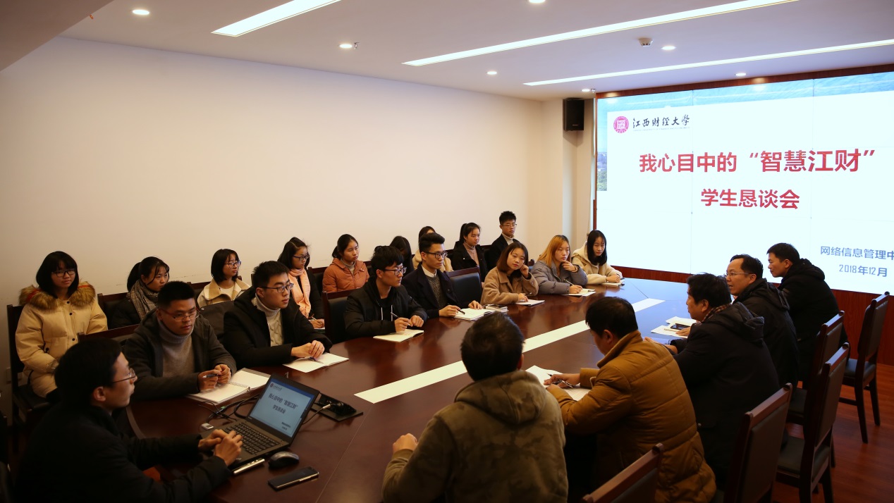 12月14日下午,网络信息管理中心召开我心目中的“智慧江财”学生恳谈会。副校长王小平出席会议。网络信息管理中心主任肖清雷、党总支书记季小刚、副主任黄辉,中心相关科室负责人以及各学院学生代表近二十余人参加了此次恳谈会。