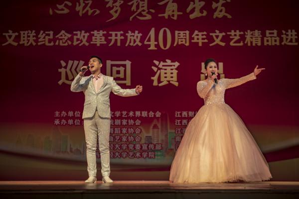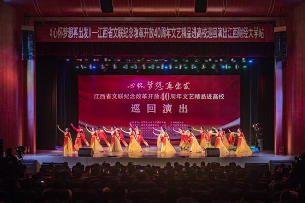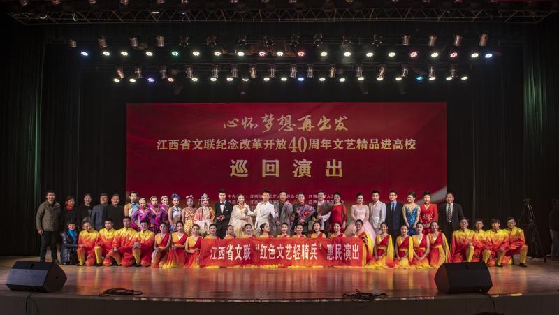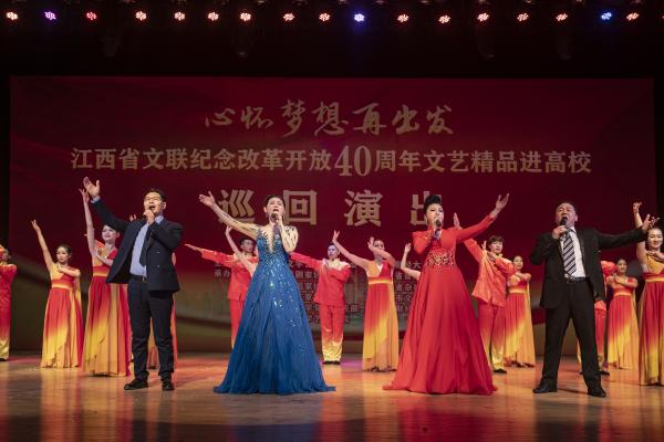 江西省文联为深入学习贯彻习近平新时代中国特色社会主义思想和党的十九大精神,庆祝改革开放40周年,结合“深入生活、扎根人民”主题实践活动和省文联“文艺联高校”的战略部署,省文联于12月中旬联合全省部分高校,在全省范围内开展纪念改革开放40周年“文艺精品进高校”活动。