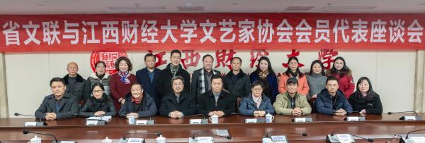 当日下午,省文联与我校文艺家协会会员代表召开了座谈会。校党委副书记蒋金法,省文联党组成员、副主席张越,省文联机关党委专职副书记章伟新,江西美术院副院长甘萍,省音乐家协会副主席潘庆蓓出席座谈会。座谈会由校党委常委、宣传部长王金海主持。