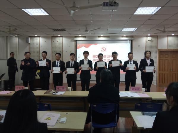 随后,宣读第三期井冈学子先锋班结业学员名单和优秀学员名单,校党委常委、组织部部长许基南为学员代表颁发结业证书与优秀学员证书。